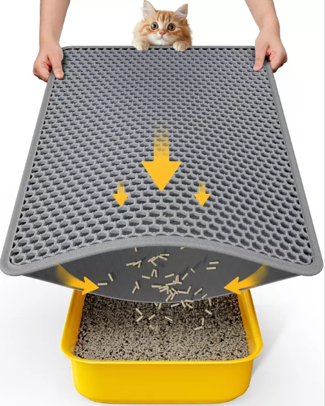 Honeycomb mats: With a honeycomb structure, these mats allow litter to fall through to a bottom layer, trapping it until you clean it. They also help to catch liquid accidents.